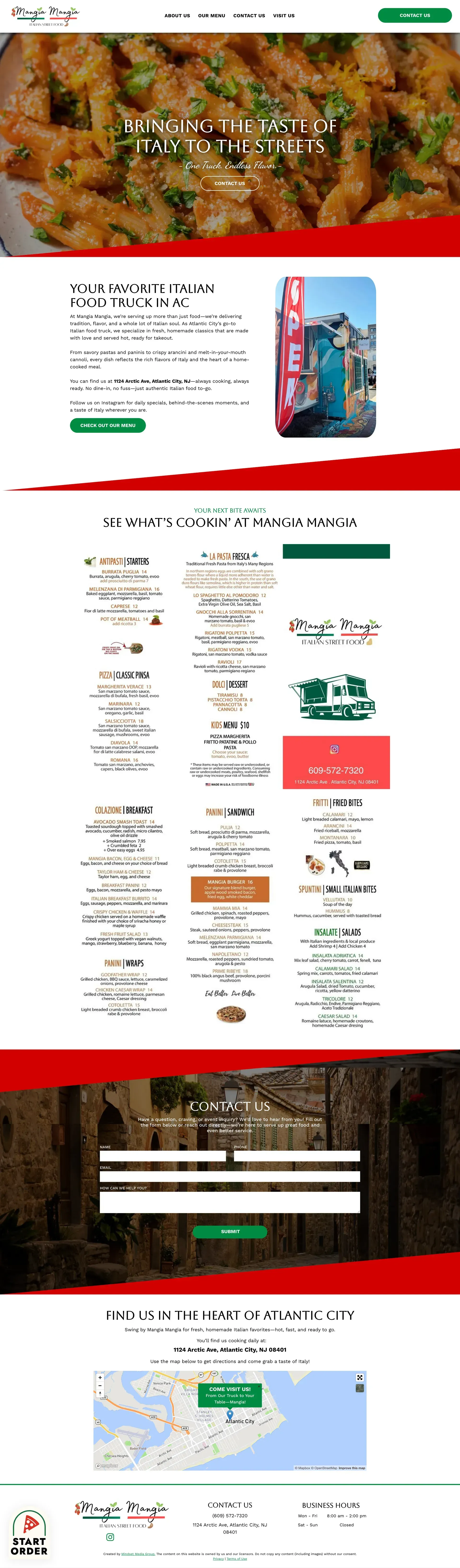 The landing page for Mangia Mangia, an Italian food truck, was designed to introduce the brand in a vibrant and inviting way. Bold food imagery immediately captures attention while highlighting the authentic Italian dishes they serve.