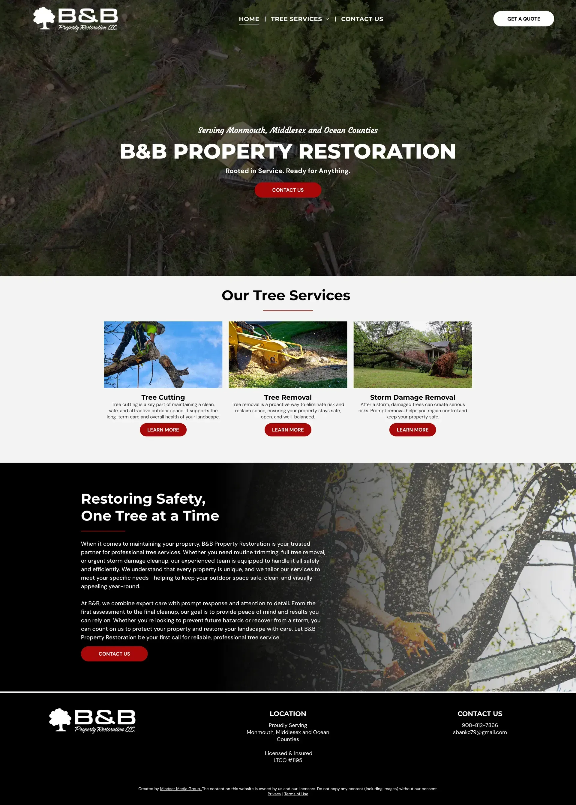 Highlighting the company’s expertise in tree removal, cutting, and storm damage restoration was the central focus for the B&B Property Restoration website. The structure presents their services in a clear, straightforward way so property owners can quickly understand what they offer.