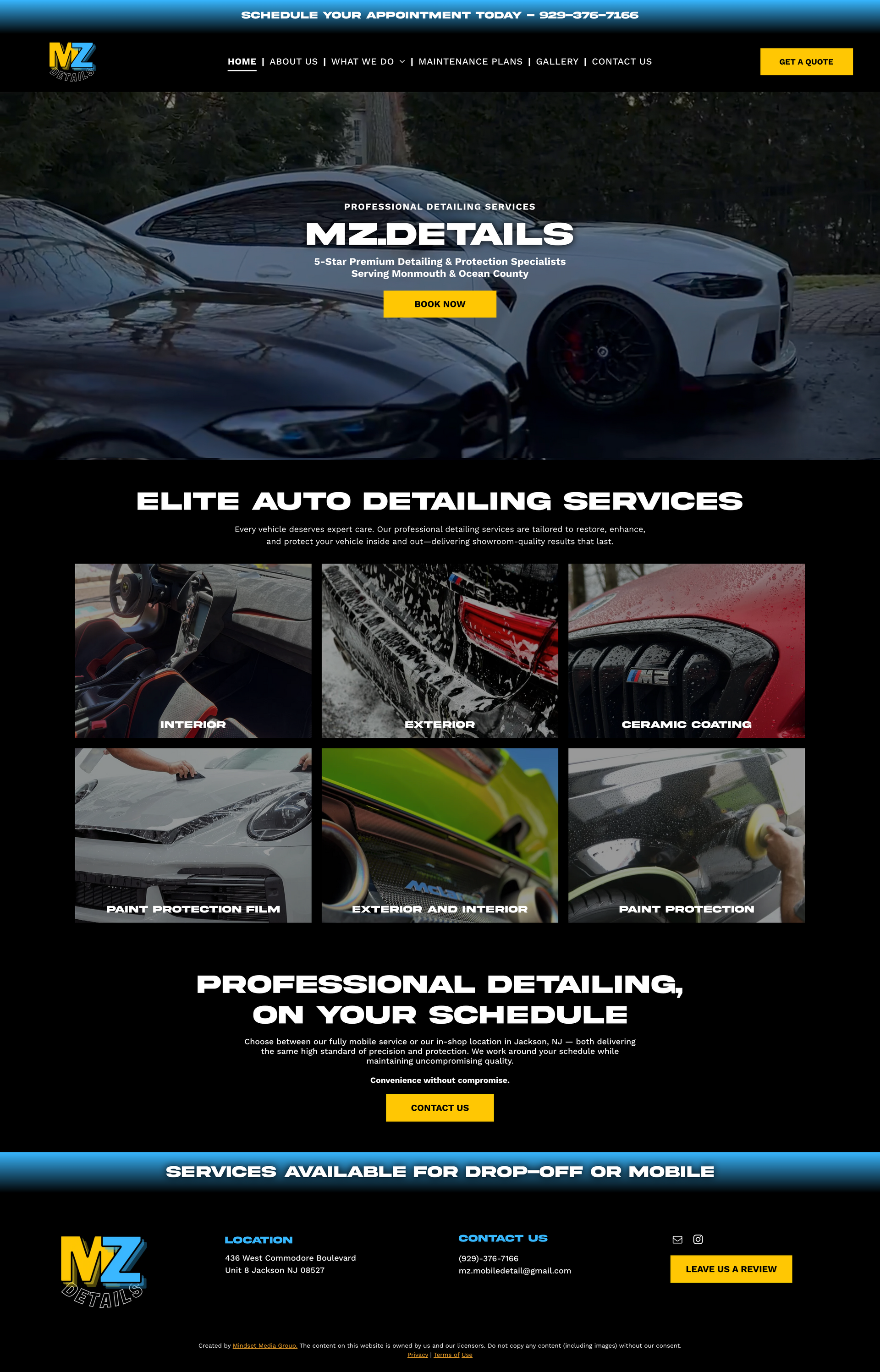 The redesign of the MZ Details website focused on modernizing the brand’s online presence while improving the clarity and organization of their services. The new design emphasizes bold automotive imagery, clean layouts, and clearly structured service packages that make it easier for visitors to understand detailing options.