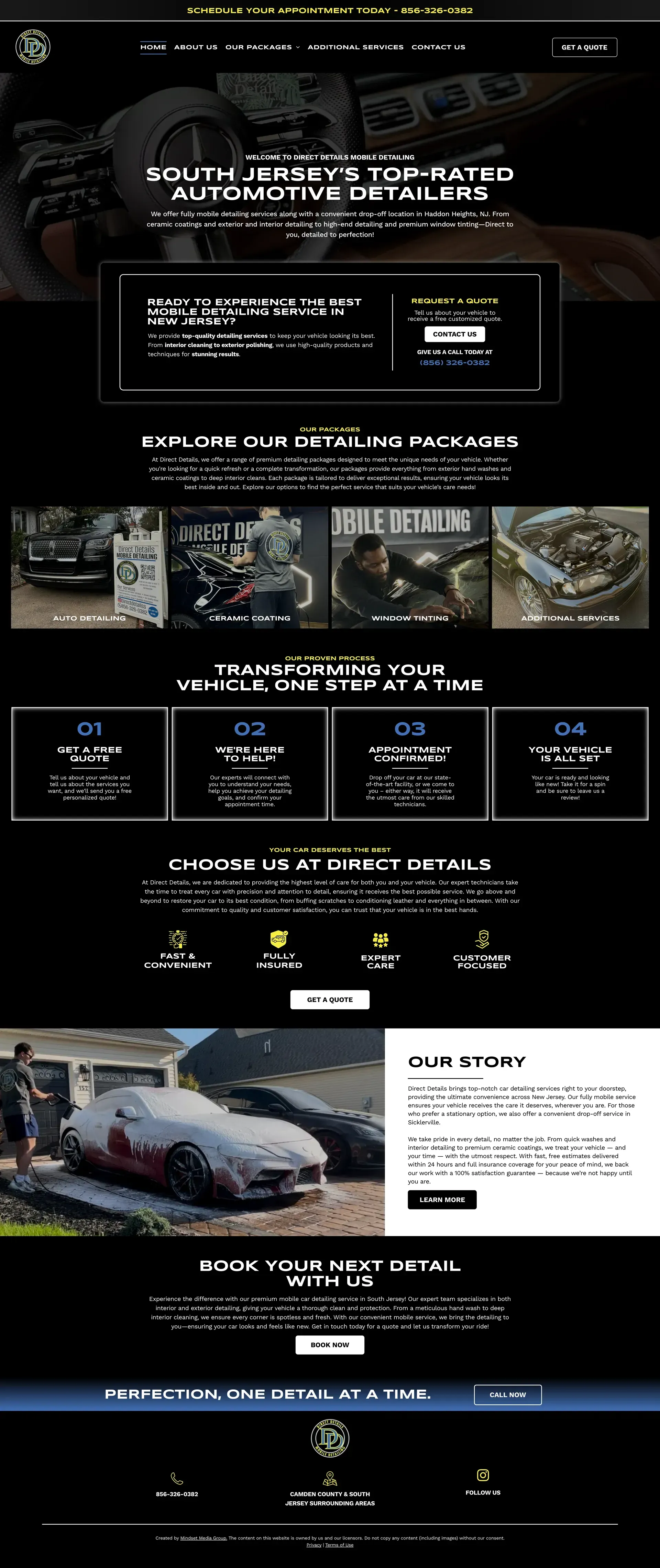 High-quality imagery was used throughout the site to showcase the detailing process and highlight the level of craftsmanship customers can expect. A streamlined layout and intuitive navigation guide visitors from learning about the services to requesting a quote or booking an appointment. The final result is a polished, conversion-focused website that reflects Direct Details’ professionalism and attention to detail.